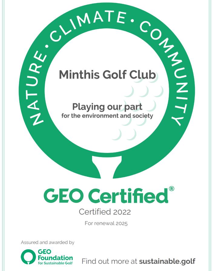 Επιβεβαιώνει ότι το Minthis Golf Club συμμορφώνεται με όλα τα κριτήρια GEO, πληρώντας ένα αξιόπιστο και διαφανές σύγχρονο πρότυπο αειφορίας βέλτιστων πρακτικών στους τομείς της φύσης, των πόρων, της κοινότητας και δράση για το κλίμα και ότι η Λέσχη δεσμεύεται για συνεχή βελτίωση.
