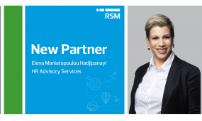 ΓΝΩΡΑ: Τρία νέα στελέχη στο μετοχικό σχήμα της εταιρείας Η Έλενα Μανιατοπούλου Χατζηπαναγή αναλαμβάνει τον τομέα των Συμβουλευτικών Υπηρεσιών Ανθρώπινου Δυναμικού στην RSM Cyprus, ως Partner