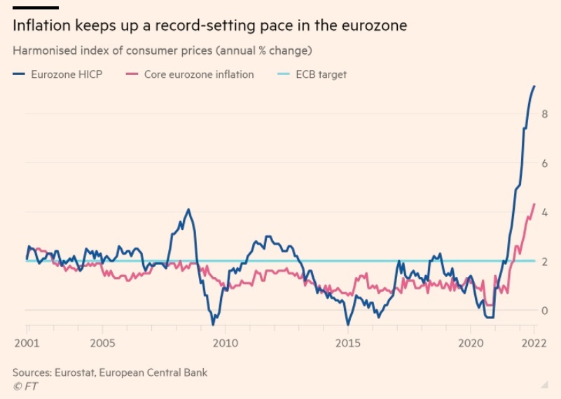 Οι εκκλήσεις προς την ΕΚΤ να ακολουθήσει τη Fed προχωρώντας σε πιο επιθετικές αυξήσεις επιτοκίων ενισχύθηκαν από τα στοιχεία που έδειξαν ότι ο πληθωρισμός της ευρωζώνης εκτινάχθηκε στο επίπεδο-ρεκόρ του 9,1% τον Αύγουστο, ενώ η ανεργία έφτασε στο ιστορικό χαμηλό του 6,6%.