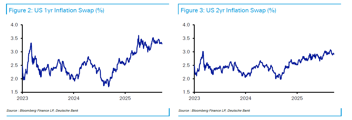 Ο δείκτης του πληθωρισμού στις ΗΠΑ (μέσω των swaps πληθωρισμού 2 ετών) έκλεισε την περασμένη εβδομάδα στο 2,92%, κάτι που δείχνει ότι ο πληθωρισμός αναμένεται να παραμείνει πάνω από τον στόχο της Fed και για τα επόμενα δύο χρόνια. Αυτό δημιουργεί δυνητικά περιθώριο ανόδου αν τελικά ο πληθωρισμός είναι χαμηλότερος από τις προσδοκίες, γεγονός που θα μπορούσε να οδηγήσει σε ταχύτερη μείωση των επιτοκίων.