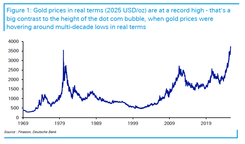 Η τιμή του χρυσού είναι σήμερα σε ιστορικά υψηλά, ακόμα και σε πραγματικούς όρους (δηλαδή μετά την προσαρμογή για τον πληθωρισμό). Παραδοσιακά, όταν οι τιμές του χρυσού ανεβαίνουν, αυτό θεωρείται σημάδι φόβου στην αγορά και όχι αισιοδοξίας.