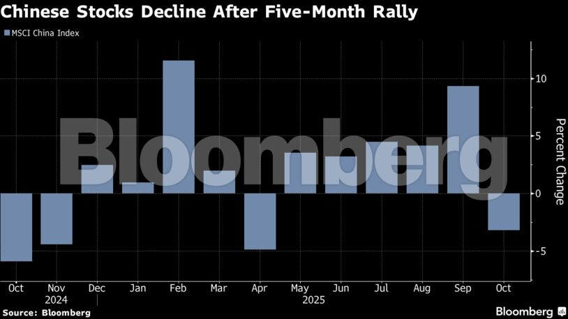 Ο δείκτης ξεπέρασε προσωρινά τον στόχο στις αρχές Οκτωβρίου, όμως στη συνέχεια υποχώρησε. Οδεύει προς την πρώτη μηνιαία πτώση μετά από έξι μήνες ανόδου, καθώς η αρχική αισιοδοξία γύρω από την τεχνητή νοημοσύνη εξασθένησε. Οι επενδυτές επικεντρώνουν τώρα την προσοχή τους στην τέταρτη ολομέλεια του Κομμουνιστικού Κόμματος και στην αναμενόμενη συνάντηση του Προέδρου των ΗΠΑ Ντόναλντ Τραμπ με τον Πρόεδρο της Κίνας Σι Τζινπίνγκ, αναζητώντας ενδείξεις για την πορεία των κινεζικών μετοχών.