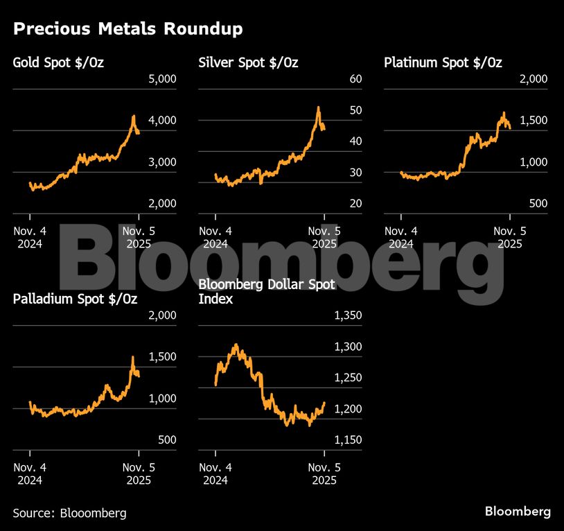 Η χθεσινή πτώση του χρυσού προήλθε από το γεγονός ότι τρεις υπεύθυνοι χάραξης πολιτικής της Ομοσπονδιακής Τράπεζας των ΗΠΑ δεν υποστήριξαν μια επιπλέον μείωση των επιτοκίων τον Δεκέμβριο, καθώς ζύγισαν τους κινδύνους από τον πληθωρισμό και την πιο αδύναμη αγορά εργασίας. Οι επενδυτές θα έχουν την ευκαιρία να ακούσουν περισσότερες απόψεις αυτή την εβδομάδα, μεταξύ άλλων από τον πρόεδρο της Ομοσπονδιακής Τράπεζας του Σαιντ Λούις, Αλμπέρτο Μουσαλέμ.