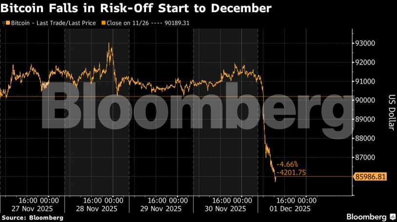 Ο Δεκέμβριος άνοιξε με αναταράξεις στις αγορές κρυπτονομισμάτων, καθώς το Bitcoin κατρακύλησε έως και 6% κάτω από το όριο των 86.000 δολαρίων στην ασιατική συνεδρίαση της Δευτέρας, προκαλώντας νέα ανησυχία στους επενδυτές. Παρόμοια εικόνα εμφάνισαν και τα υπόλοιπα tokens, με το Ether να υποχωρεί πάνω από 7% στα 2.800 δολάρια και το Solana να χάνει 7,8%, σύμφωνα με τα στοιχεία του Bloomberg. Το κλίμα θεωρείται εύθραυστο, καθώς η περίοδος διόρθωσης που ξεκίνησε στις αρχές Οκτωβρίου είχε φαινομενικά κοπάσει, πριν οι πωλήσεις επανέλθουν με σφοδρότητα.