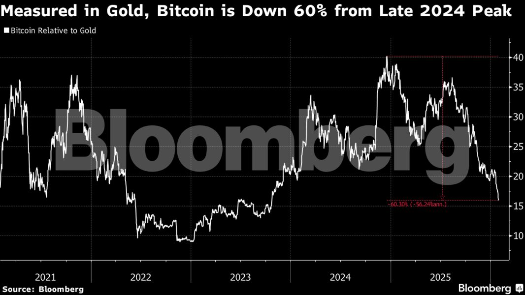 Ένας τρόπος να αξιολογηθεί αν το Bitcoin εκπληρώνει τον ρόλο του ως ψηφιακός χρυσός είναι η αποτίμησή του σε όρους χρυσού. Με αυτό το κριτήριο, αποτυγχάνει, καθώς έχει υποχωρήσει περίπου 60% σε όρους χρυσού από το υψηλό του στα τέλη του 2024. Για ορισμένους traders, η πρόσφατη πτώση προμηνύει περαιτέρω πιέσεις, με το ενδεχόμενο διάσπασης κάτω από τις 80.000 δολάρια εφόσον το αρνητικό κλίμα διατηρηθεί μέσα στο Σαββατοκύριακο.