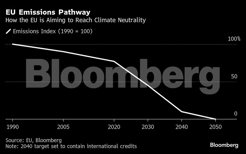 Η ΕΕ έχει ήδη δύο δεσμευτικούς στόχους: καθαρές εκπομπές μηδενικού ισοζυγίου το 2050 και μείωση κατά 55% έως το 2030 σε σύγκριση με τα επίπεδα του 1990. Ωστόσο, η ευρεία συναίνεση για τη δράση για το κλίμα που επικρατούσε πριν από πέντε χρόνια έχει διαρραγεί, δίνοντας τη θέση της στον εμπορικό προστατευτισμό και σε πολιτικές που δίνουν προτεραιότητα στη μείωση του κόστους της ενέργειας. Αυτό έκανε τον στόχο για το 2040 ένα εξαιρετικά ευαίσθητο ζήτημα.