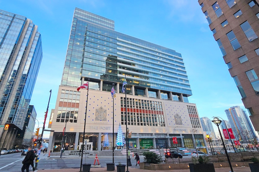 Το The Post, που άνοιξε αρχικά το 1958 ως εγκαταστάσεις επεξεργασίας της Canada Post, αναδιαμορφώθηκε από την QuadReal Property Group σε περίπου 1,1 εκατομμύρια τετραγωνικά πόδια γραφείων και 185.000 τετραγωνικά πόδια εμπορικού χώρου. Το ακίνητο καταλαμβάνει ένα ολόκληρο οικοδομικό τετράγωνο στο κέντρο του Βανκούβερ.