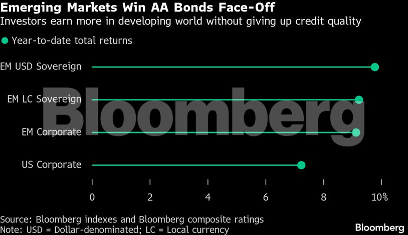 Οι χώρες με αξιολόγηση AA –όπως τα Ηνωμένα Αραβικά Εμιράτα, το Κατάρ, η Ταϊβάν, η Νότια Κορέα και η Τσεχία– κατέγραψαν φέτος καλύτερες συνολικές αποδόσεις από αντίστοιχες ανεπτυγμένες οικονομίες, τόσο σε δολάρια όσο και στα τοπικά τους νομίσματα, αναφέρει το bloomberg. Σε αρκετές μάλιστα περιπτώσεις, το κόστος δανεισμού σε δολάριο έχει πλησιάσει –ή ακόμη και αγγίξει– το επίπεδο των αμερικανικών Treasuries, τα οποία παραδοσιακά θεωρούνται το ασφαλέστερο σημείο αναφοράς.