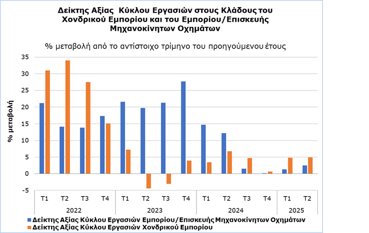 Ετήσια άνοδο σημείωσε ο δείκτης αξίας κύκλου εργασιών του χονδρικού εμπορίου και των οχημάτων το δεύτερο τρίμηνο του έτους.