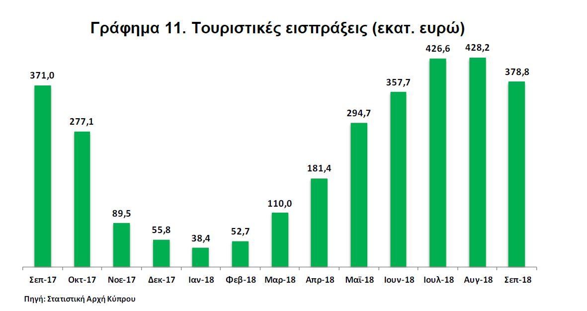 Συγκεκριμένα, αυτές ανήλθαν στα €378,8 εκατ. από €371,0 εκατ. τον Σεπτέμβριο του 2017 (Γράφημα).