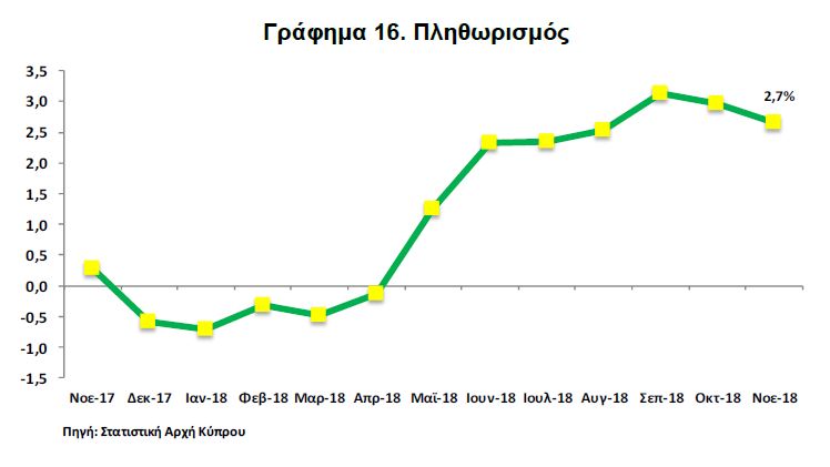 Στο πρώτο ενδεκάμηνο του 2018, ο πληθωρισμός ήταν, σε μέσο επίπεδο, 1,4%.